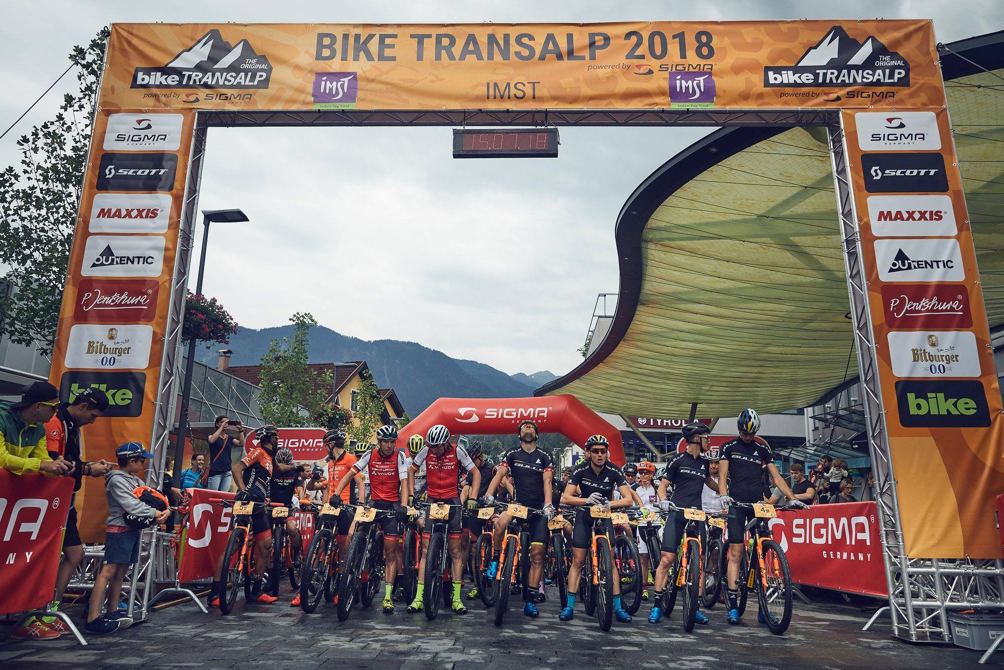 În 12 iulie 2018 am luat cu noi în mașină bicicletele, 14 perechi de uniforme pt fiecare etapă(mulțumim prietenilor pt ajutor), nutriția SiS, alt echipament, piese de rezervă și multe altele și am pornit la drum, Chișinău(Rep. Moldova) – Imst(Austria), aprox. 1900km. Călătoria a început pe dos de la ieșirea din Chișinău. La bordul computerului s-a pornit semnalizatorul – Check Engine. A urmat o oră de căutări service pt diagnostic care e deschis la 23:00, am gasit pe cineva gata să ne deschidă pentru noi, iar după diagnoză – aflăm că ultima dată combustibil cu care a fost alimentat era de proasta calitate – Lukoil. Am trecut pe la Rompetrol, ne-a anulat eroarea și am pornit mai departe. A urmat vama moldovenească, am fost trimiși să trecem via scanerul cu raze ”X-Ray”, posibil arătam dubios cu atâtea bagaje, am primit ok-ul să mergem mai departe, însă colaboratorii vămii nu prea au cominicat între ei, așa că a trebuie să ne întoarcem înapoi pentru a confirma încă o dată că avem voie să trecem. După vamă eu m-am pus la somn, pentru că urma să conduc după ce Max ar fi simțit că are nevoie de odihnă, însă m-am trezit de la altceva. M-am trezit de la un zgomot puternic și în momentul în care Maxim încerca să stabilizeze mașina pe traseu, iar pentru că ambele roți din dreapta au cedat, ne-am târât de asfalt până la oprirea completă – nu e cel mai plăcut mod de a te trezi. Am înțeles ce se întâmplă mai târziu, am nimerit în gropi gigantice pe șosea… Aveam cartela Vodafone, în încercarea de a o schimba și a căuta pe net un evacuator(170EUR) a zburat pe jos, f**k. Am folosit net în roaming, am găsit rapid tot ce era nevoie. Am ajuns la Brașov pe la 7 dimineața. Nu puteam accepta ca se termină Transalp în acel moment, așa că am căutat să închiriem o mașină și să ajungem în Austria, cel mai târziu puteam porni la 21:00 din Brașov pentru a ajunge la timp, însă la 14:00 eram în drum. Am luat un Renault Megane din 2006 la preț cosmic, 460EUR, ne-am bucurat și de atât, am sunat la atâtea firme și peste tot nu aveau nimic disponibil – important că era în stare bună și să putem ajunge la destinație – nu era de unde alege comfort. Am condus și eu și Max, LOL, ultima data când am mers pe cutie manuală a fost acum un secol, iar asta avea tocmai 6 viteze și era nevoie și de ceva mușchi pentru a schimba, și volanul era foarte greu, noroc ca eram antrenați :)))))))În 14 iulie am ajuns în Imst, primul lucru care l-am facut a fost să ne trântim pe iarba verde și moale de lângă expo area(nu eram singurii care au facut la fel, sacul de dormit era tare popular prin zona) și să ne bagăm la somn până puteam ridica pachetele de start, am ajuns mai devreme. După ce am luat pachetele de start, ne-am îndreptat spre camp, am transferat tot din mașină ce urma să luăm cu noi în cele 2 genți încăpătoare oferite de organizatori și de care vor avea grijă să le transporte de la etapă la etapă, am lăsat mașina în parcarea oferită tot de organizatori, am dus bike-urile în bike park, urma pasta party și odihna înainte de startul de mâine.Pasta party nu e ceea ce obișnuim să vedem la evemnimente… Am primit 2 biletețele cu care puteam merge la orice restaurant din lista expusă de organizatori și să luăm o porție de pasta, iar băuturile le plătim noi. Am mers la primul cel mai apropiat de camp, am intrat, am așteptat puțin și am primit 2 porții de pasta bolognese enorme, nu mai era nimeni în restaurant decît noi 2, am mers noi prea devreme?!, ne-am bucurat de intimitate și ne-am mai plimbat prin Imst. Expo Area, restaurantul, camp-ul sunt într-o rază de 1-2km, exact cât să apuci să vezi ceva în minunatul oraș montan, care e foarte drăguț, cu străzi înguste, peisaje alpine care se deschid din centru, balcoane cu flori, multe, diverse, semn clar că acest eveniment e focusat pe turism și pe noi ne impresionează atît de mult încă din prima seară.