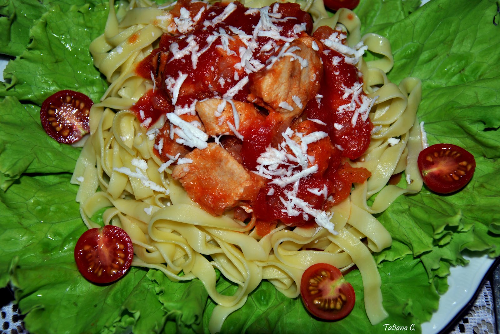 Nu ți-am povestit, m-am accidentat. Așa s-a întîmplat ca întorcîndu-mă acasă cu bicicleta…era o coborîre frumoasă, aveam peste 50km/h – de obicei aici îmi înregistrez micile mele recorduri, dar azi parcă am presimțit ca nu se merită să obțin un rezultat mai bun și eram cu ochii pe frîne, spre sfîrșitul coborîrii erau cîțiva copii – nu e un loc pentru joacă – dar azi erau acolo, erau concentrați în ale lor, am hotărît să mai micșorez din viteză pînă la 40, dar la aprox. 5-7m distanță un baiețel a rupt-o la fugă, din cercul ăla de copii și ajuns pe traseu, se îndrepta spre partea cealaltă a drumului, am frînat, nu brusc pentru a nu zbura peste bicicletă, ceilalți copii văzînd ce are să se întîmple au strigat din toate puterile către acesta ce traversa, iar de spaimă s-a oprit, și stătea acolo nemișcat, am simțit ca impactul e inevitabil, și atunci în acel moment, într-o fracțiune de secundă am făcut o manevră bruscă am ocolit băiețelul, dar eu am cazut rău pe asfalt cu toată greutatea pe cotul drept, m-am asigurat ca toți sunt bine și am pornit mai departe spre casă, pe bicicletă – acasă au început marile peripeții, dureri insuportabile. Important e ca nu am nici o fractura, am mers la medic, mi-a făcut radiografia și rezultatele au fost ok. În acest moment au trecut deja 3 zile, sunt mai bine, dar nu mi-am planificat nimic pentru acest weekend, de plimbări cu bicicleta nici nu poate fi vorba(doar acest weekend, pînă mă fac bine), dar am găsit să călătoresc astăzi în bucătărie. Punctul de destinație – paste cu piept de pui și sos de roșii. Aliați în călătorie mi-au fost: