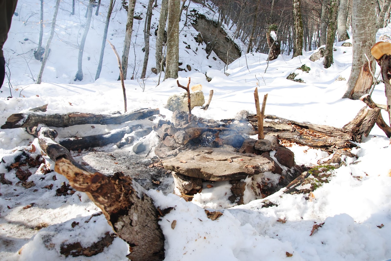 A urmat apoi coborîrea, nu puteam înnopta la o altitudinea prea mare ))..aici mare veselie, cu cît coborîm mai mult cu atît se înfunda mai mult picioarele în zăpadă, traversam metru cu metru destul de greu la început, deoarece pentru a pași era necesar de eliberat piciorul complet afundat în zăpadă, de ridicat cît mai sus, fixat si același lucru cu celalalt de X ori, aici am aplicat aceeși tehnică, înainta cineva..facea loc..cînd obosea, trecea în coadă )) ..erau mulți copaci cazuți…ce vesel treceam peste ei, era și greu, important era sa nu ajung cu piciorul sub vreo bîrna ascunsă pe sub zăpadă))..cînd panta a devenit mai abruptă – m-am și rostogolot..hehe…ce haios a fost (n-am pățit nimic) )))…Am înnoptat lîngă izvor, noaptea se auzea susurul apei..iar serile petrecute lîngă focul puternic au rămas de neuitat…îmi va fi dor… îmi este deja!