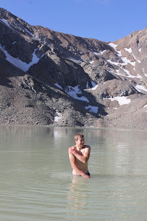23.07.2012. Cu cât suntem mai sus, cu atât soarele încălzește mai puternic, iar în lipsa lui e în sens opus, foarte frig. În această dimineață suntem alintați de soare și facem câteva scufundări în lac. Apa a fost ”gheață”…