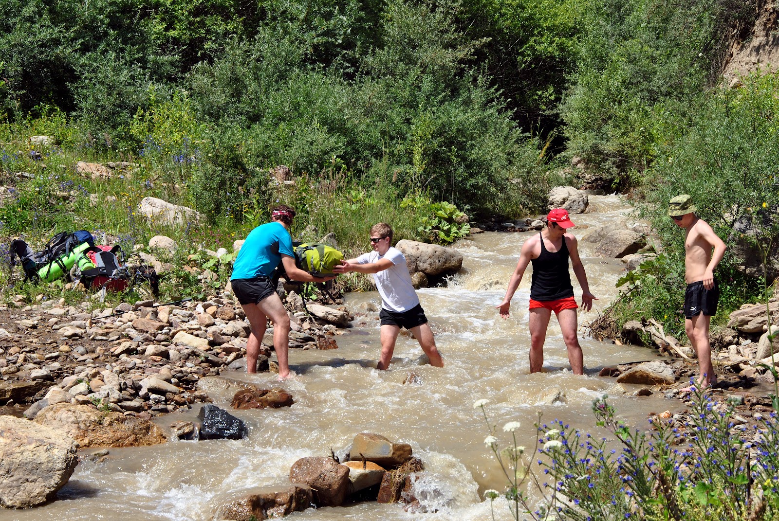 Şi acum – să trecem! După ce am văzut cum Vlad ar fi fost înghiţit de apele deloc liniştite a râului a fost mai greu să mă decid să trec, dar totul s-a întîmplat mai repede decît credeam şi suntem toţi de partea cealaltă şi dacă am intrat în apa rece aproape cu totul, mai facem cîteva scufundări)))