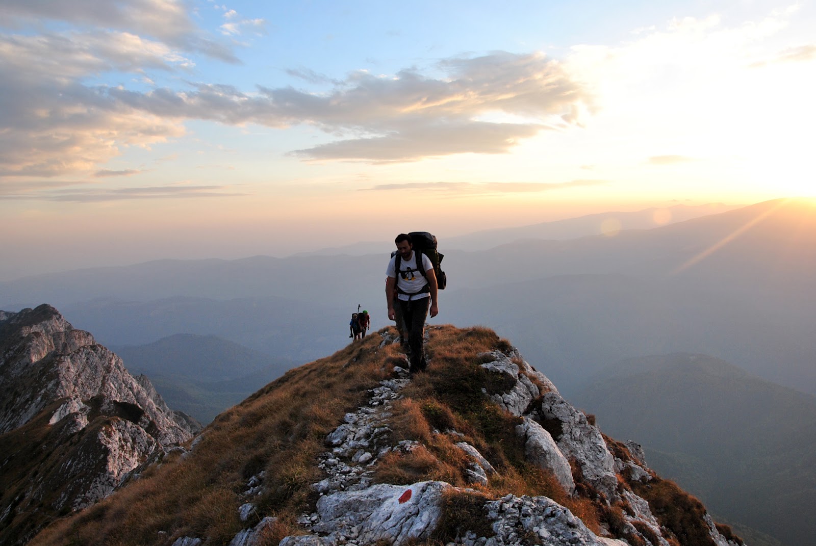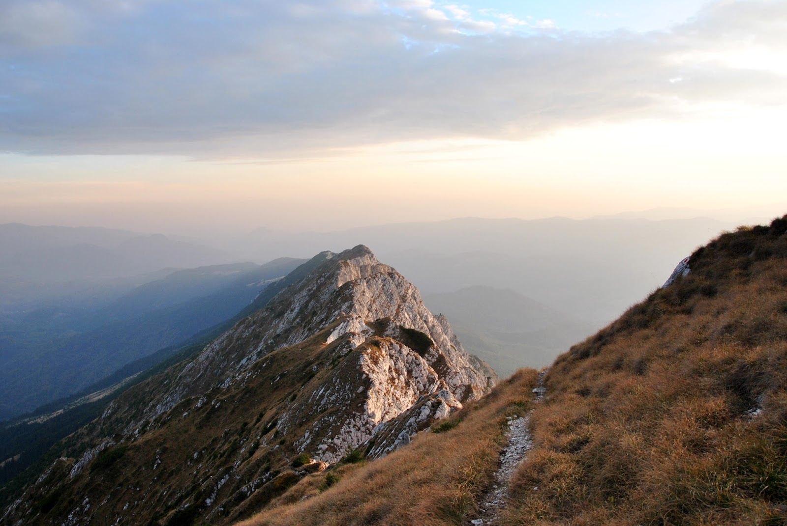 Ajunși pe creastă, am continuat să ne deplasăm ca pe vârf de muchie)) de sus se deschid atâtea peisaje frumoase, de te pierzi în ele – cu atât mai mult că se lasă apusul, iar culorile îs din cele mai alese…